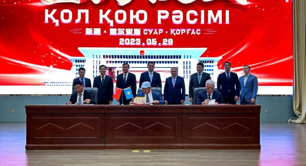 В рамках визита делегации из области Жетысу в Китайскую Народную Республику была проведена деловая встреча в городе Хоргос, где был заключен трехсторонний меморандум о сотрудничестве между управляющей компанией СЭЗ «Хоргос — Восточные ворота», технопарком «Казахстанско-китайский международный промышленный город» и МЦПС КНР в сфере транспорта, логистики и торговли. Это способствует развитию беспрепятственной логистики и укреплению экономических отношений между регионом и Синьцзян-Уйгурским автономным районом Китая, через который проходит трансконтинентальный автомобильный коридор «Западная Европа — Западный Китай». Секретарь КПК КНР Хао Цзяньминь и аким области Жетысу Бейбит Исабаев высказали готовность к совместной работе и созданию специальной рабочей группы для регулирования отношений между двумя регионами. В заключение встречи был подписан меморандум о сотрудничестве между Казахстанско-китайским международным промышленным городом и торгово-логистическими специальными экономическими зонами.