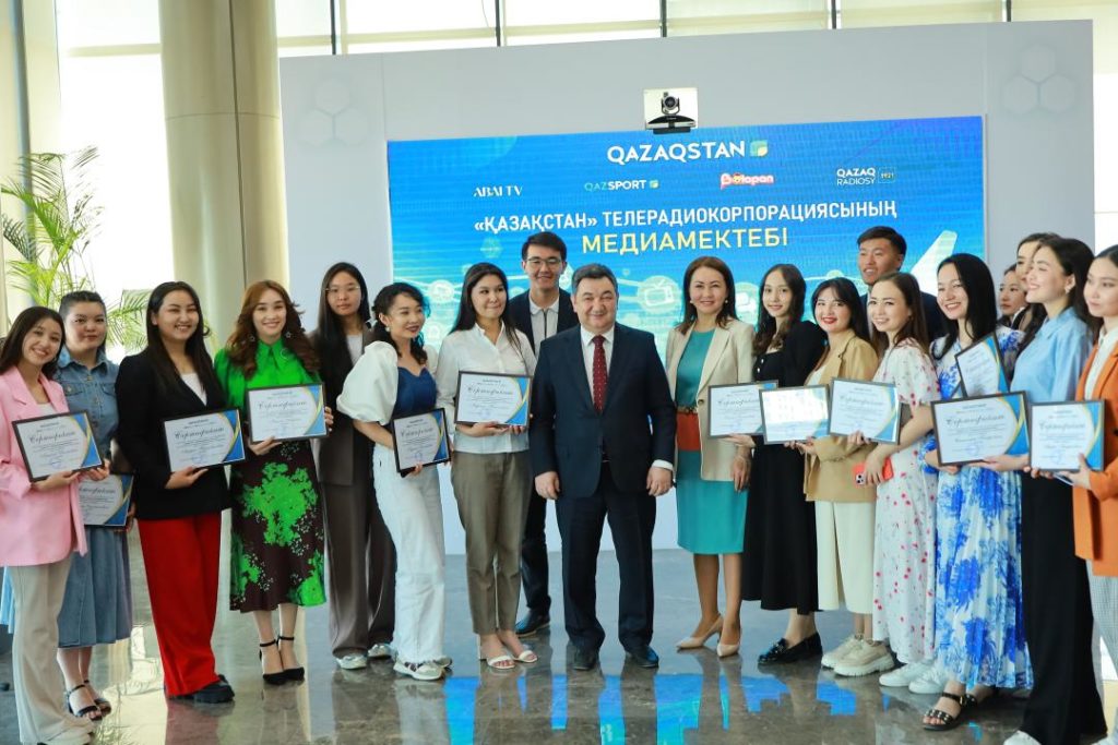 В ходе этапа медиашколы телерадиокорпорации «Казахстан» были отобраны 35 студентов из более чем 90 заявок от студентов III и IV курсов факультетов журналистики, медиатехнологий, киноискусства и телевидения университетов страны. Сегодня министр информации и общественного развития вручил выпускникам сертификаты об окончании медиашколы. В течение более чем 6 месяцев участники получали творческие и технические знания у специалистов каналов «Qazaqstan», «Qazsport», «Abai TV», «Balapan» и «Казахского радио» на бесплатной основе. Молодым специалистам будет предоставлена возможность начать свою карьеру в структуре телерадиокорпорации «Казахстан».