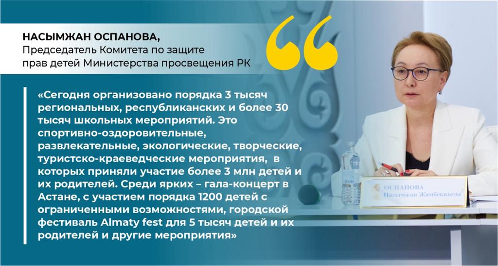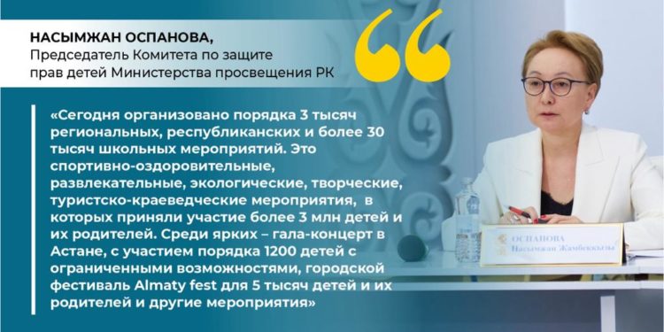 О мероприятиях, проходящих в День защиты детей, рассказала председатель Комитета по охране прав детей Министерства просвещения РК Насымжан Оспанова в ходе круглого стола в Службе центральных коммуникаций