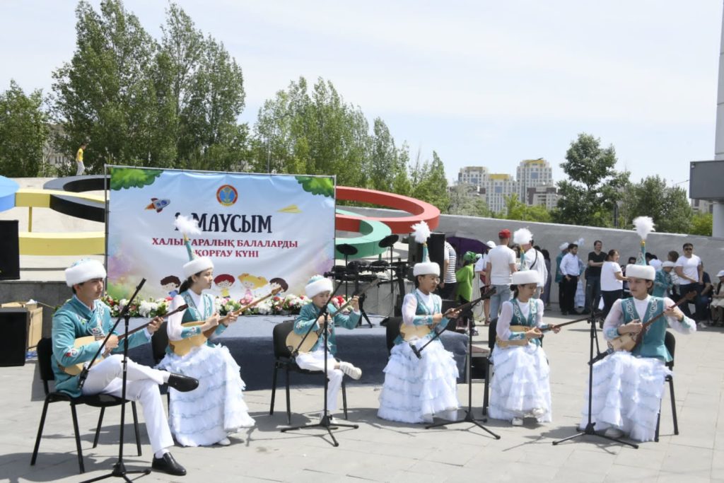 «Сегодня с 10 утра начались в дошкольных организациях флешмобы с воздушными шарами, мыльными пузырями. Также параллельно на спортивных площадках города дети играли в футбол с привлечением наших знаменитых футболистов. И в 12 часов во всех парках города мы проводим массовые мероприятия. С районными акиматами совместно провели подготовку. Здесь участвуют и школы города, и колледжи, и наши дошкольные организации, и организации дополнительного образования. В столичном парке у нас шоу мыльных пузырей, мастер-классы, концертная программа с привлечением аниматоров, театралов. Нам помогли районные акиматы, предоставили площадку, помощь. Здесь у нас выставка картин, раздают выпечку», — проинформировала она.