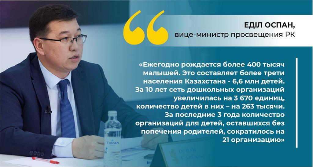 Вице-министр просвещения РК Едил Оспан в ходе круглого стола в Службе центральных коммуникаций сообщил, что количество организаций для детей, оставшихся без попечения родителей, уменьшилось