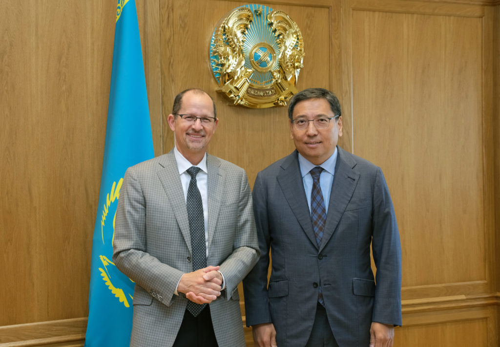 Аким Алматы Ерболат Досаев и директор Coursera Джефф Маджионкалда обсудили вопросы двустороннего сотрудничества в целях внедрения глобальной платформы онлайн-обучения в организации технического и профессионального образования города. На встрече присутствовали директор Coursera в Казахстане Рауан Кенжеханұлы, а также представили компании в сфере электронного образования Bilim Media Group и др.