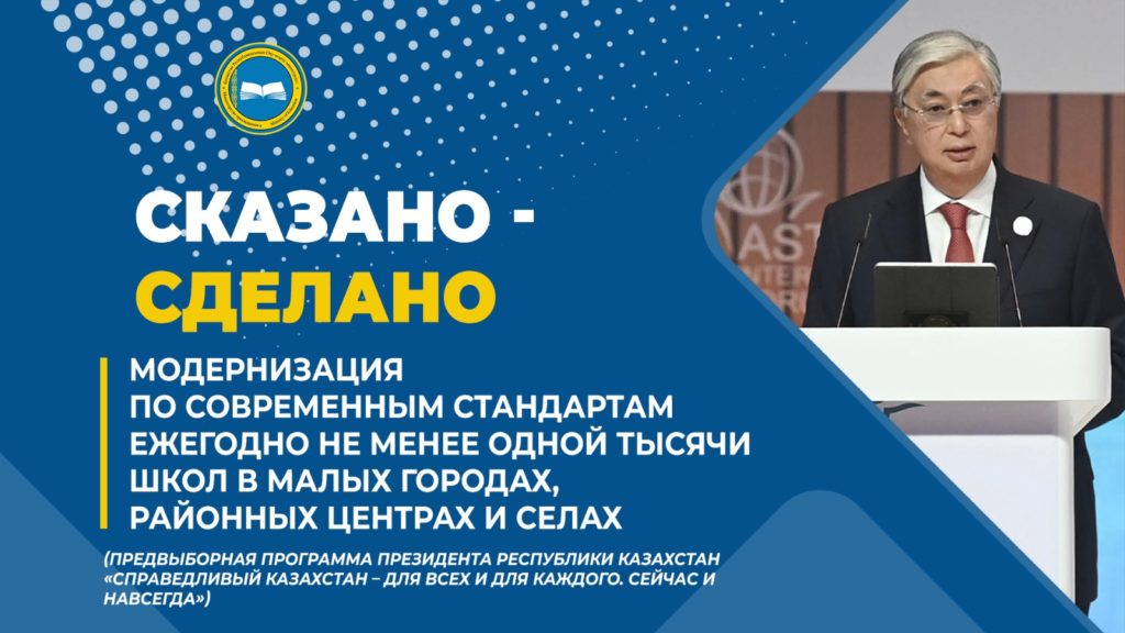 Модернизация по современным стандартам ежегодно не менее одной тысячи школ в малых городах, районных центрах и селах