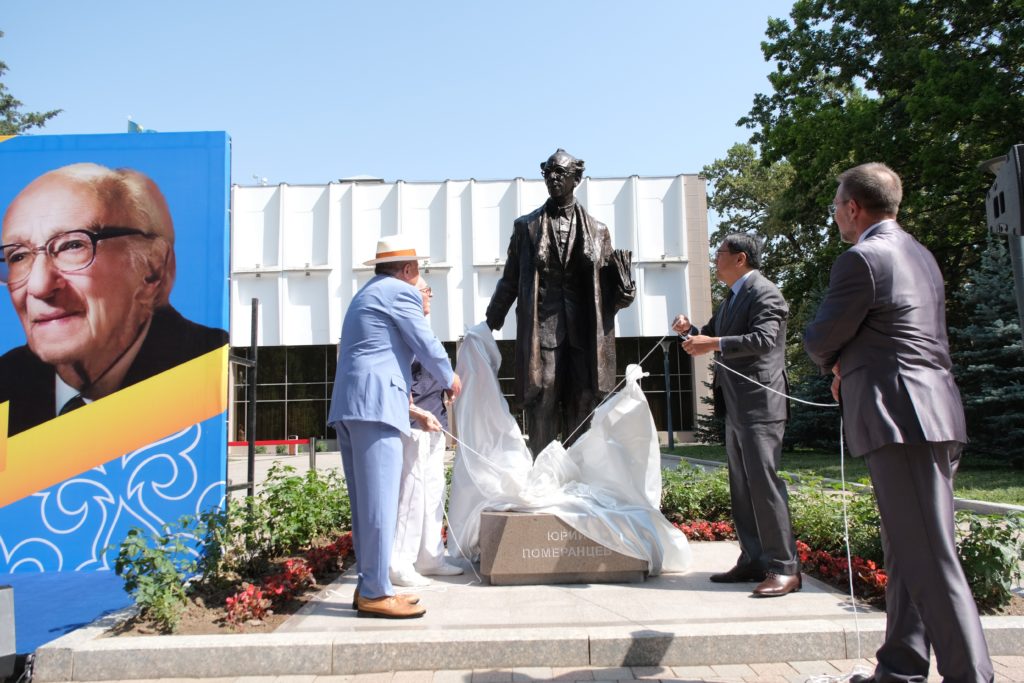 В Алматы перед зданием Национального русского театра драмы имени М. Лермонтова при поддержке акимата города состоялось открытие бронзовой скульптуры «нашего милого доктора» – знаменитого актера Юрия Померанцева. В церемонии приняли участие аким Алматы Ерболат Досаев, меценат Нурлан Смагулов, представители творческой интеллигенции, общественные деятели и др.