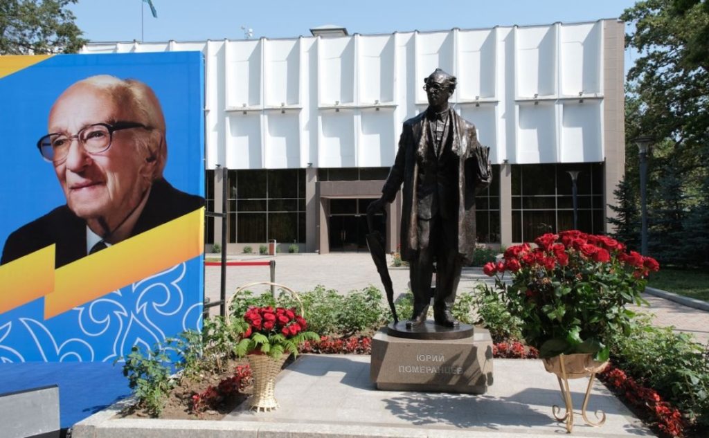 В Алматы открыли памятник Юрию Померанцеву, народному артисту, который сыграл более 300 ролей в театре и кино. Скульптура была установлена на гранитный постамент, перед зданием театра драмы имени М. Лермонтова. Автором скульптуры является Нурлан Далбай. Юрий Померанцев ушел из жизни в марте 2020 года в возрасте 99 лет. Он был награжден медалью «За отвагу» и многочисленными орденами. Памятник был установлен по инициативе Фонда Нурлана Смагулова при поддержке акимата Алматы.