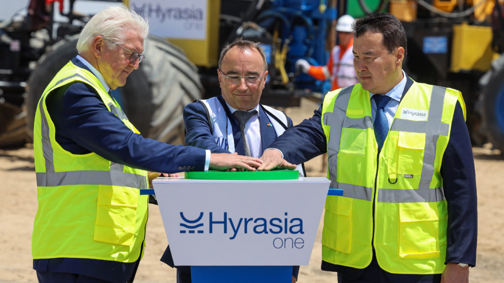 В рамках строительства завода по производству «зеленого» водорода в Каракиянском районе Мангистауской области с участием Федерального Президента Германии Франк-Вальтера Штайнмайера и Премьер-Министра Казахстана Алихана Смаилова состоялась церемония запуска пробного бурения.