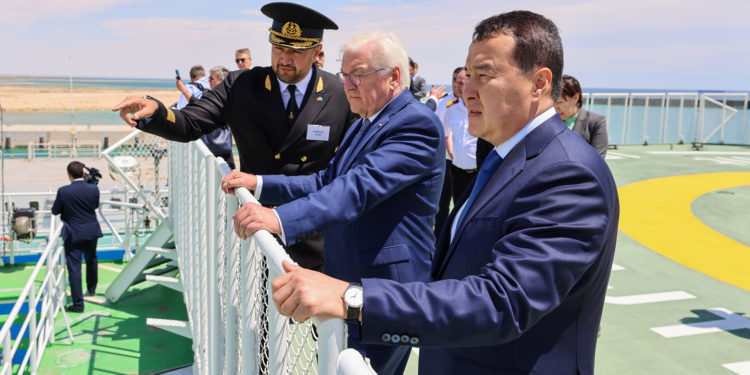 В ходе государственного визита в Казахстан Федеральный Президент Германии Франк-Вальтер Штайнмайер в сопровождении Премьер-Министра РК Алихана Смаилова посетил порт Курык и ознакомился с новыми транспортно-логистическими проектами в рамках развития Среднего коридора.