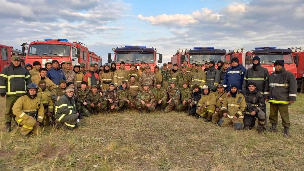 Пожарные столичного ДЧС продолжают тушить сухостой на площади 80 гектаров. Работы по проливке отдельных дымоточек в горельнике и постоянное окарауливание мест пожара проводятся силами подразделений ДЧС и «Астана Орманы». С начала тушения пожара авиацией было осуществлено 149 сбросов воды объемом 447 тонн. 20 июня силы и средства ДЧС Карагандинской и Акмолинской областей убыли домой. Всего в тушении задействовано 34 человека и 8 единиц техники. На месте продолжает работать штаб пожаротушения. Акимат города организовал питание для участников тушения пожара. Министр по ЧС Сырым Шарипханов выразил благодарность огнеборцам с соседних регионов за оперативное реагирование и оказанную помощь. Фото: ДЧС Астаны.