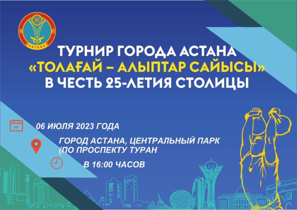 При поддержке акимата Астаны в честь 25-летия столицы состоится открытый городской турнир — состязания сильнейших «Толагай», сообщает официальный сайт акимата города.
