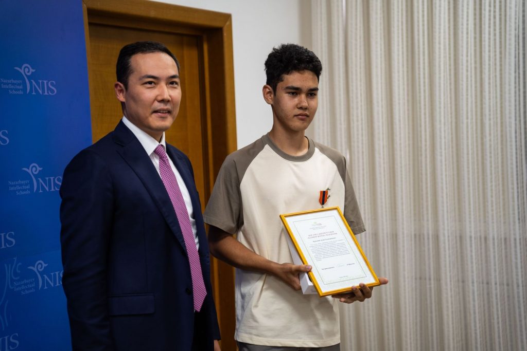 Сегодня министр по чрезвычайным ситуациям Сырым Шарипханов наградил ученика NIS Петропавловска Аслана Гималетдинова медалью «За спасение утопающих». Аслан спас тонущего мальчика в Северо-Казахстанской области. Министр выразил благодарность Аслану за его героизм и смелость, подчеркнув важность соблюдения правил безопасности на воде. Председатель Правления NIS Ануар Жангозин также выразил гордость учителями и одноклассниками Аслана и вручил ему награду «Қамқор жүрек». Ануар Жангозин подчеркнул, что подвиг Аслана отражает ценности и дух Назарбаев Интеллектуальных школ, которые сочетают в себе образование и воспитание. Коллектив NIS также выразил благодарность родителям Аслана за воспитание храброго юноши. Аслан Гималетдинов является активным и ответственным учеником NIS Петропавловска, который также увлекается музыкой и волейболом.