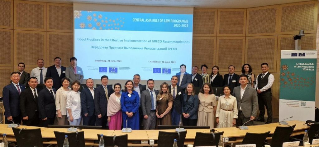 Совет Европы в рамках Программы верховенства права в Центральной Азии организовал обучающий семинар для 24 представителей государственных органов РК, реализующих рекомендации ГРЕКО (Группа государств Совета Европы по борьбе с коррупцией) по борьбе с коррупцией. Семинар был организован при содействии Генерального консульства РК в Страсбурге. В ходе семинара прошел обмен мнениями по всем аспектам борьбы с коррупцией. Целью семинара была модернизация нормативно-правовой базы и установление диалога с европейскими экспертами. По итогам семинара национальные органы власти Казахстана и учреждения, реализующие рекомендации ГРЕКО, ознакомились с выполнением рекомендаций и отчетностью по ним. Казахстанская сторона изучила опыт других стран в реализации рекомендаций и осознала важность межведомственного сотрудничества и координации. ГРЕКО — это Группа государств Совета Европы по борьбе с коррупцией, к которой присоединилась РК в январе 2020 года. В марте 2022 года ГРЕКО утвердила Отчет об оценке РК, включающий 27 рекомендаций по антикоррупционным мерам.