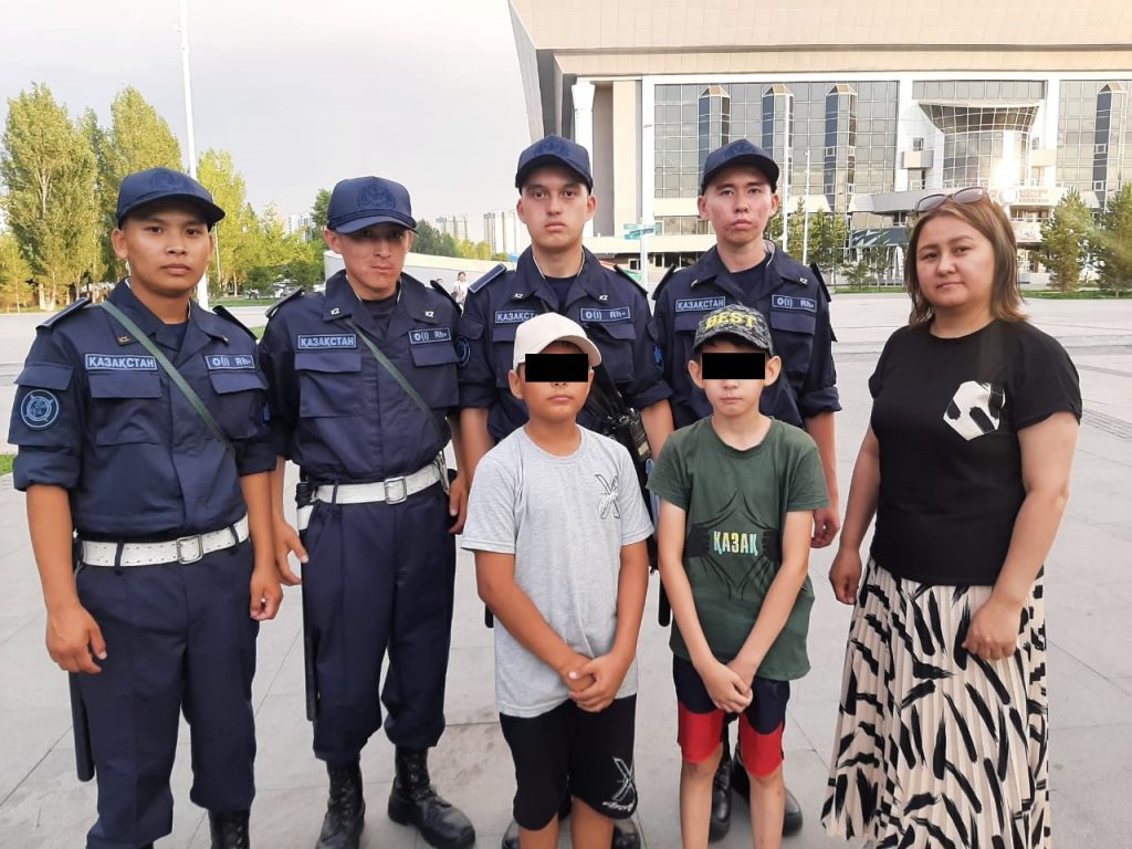 Начальник войскового наряда, рядовой Азамат Шенгелбаев, вместе с патрульными рядовыми Ермеком Аскаровым и Бауыржаном Бакыт, а также стажером рядовым Абдурахманом Кадиром передали ориентировку на детей другим нарядам и начали поиск потерявшихся мальчиков. Через примерно 20 минут военнослужащие обнаружили детей недалеко от детской площадки возле фонтана и вернули их матери.