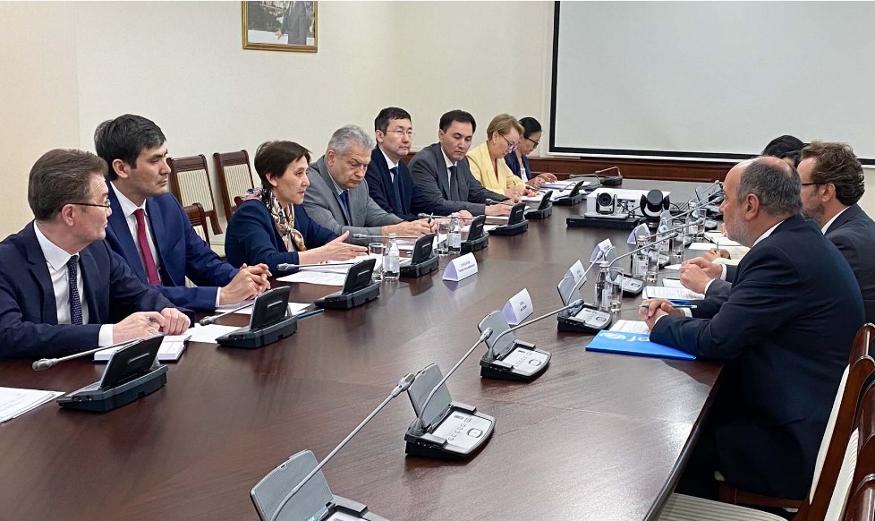 Заместитель Премьер-Министра – министр труда и социальной защиты населения Тамара Дуйсенова провела встречу с заместителем регионального директора Детского фонда ООН (ЮНИСЕФ) по странам Европы и Центральной Азии Октавианом Биволом, передает Optimism.kz. Во встрече приняли участие представитель Детского фонда ООН (ЮНИСЕФ) в Казахстане Артур Ван Дизен, вице-министры здравоохранения, труда и социальной защиты населения, информации и общественного согласия, цифрового развития, внутренних дел, руководители бюро национальной статистики и Комитета по охране прав детей. Представители ЮНИСЕФ положительно оценили принятие Социального кодекса, создание Цифровой карты семьи и центров поддержки семьи в регионах. Они также выразили готовность оказать техническую поддержку и помощь в дальнейшем развитии системы социальных услуг с целью повышения доступности, качества и эффективности социальной работы. Кроме того, были обсуждены вопросы дальнейшего сотрудничества ЮНИСЕФ с госорганами по вопросам улучшения качества жизни детей, защиты детства, социальных услуг и др. В частности, планируется развивать сотрудничество ЮНИСЕФ с Правительством РК для разработки новых решений по совершенствованию программы АСП, Индекса благополучия детей, цифровой карты ребенка, расширению охвата детей универсальными детскими пособиями (на основе международного опыта). Совместно будут рассмотрены рекомендации ЮНИСЕФ по усилению мер защиты детства, укреплению законодательства, профилактике детского неблагополучия с акцентом на работу с причинами, повышению доступности образования, цифровизации госуслуг, предотвращению буллинга, раннему вмешательству и реагированию на насилие в отношении детей и др.