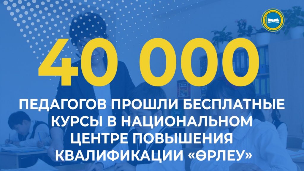 На сегодня в Казахстане 40 000 педагогов прошли бесплатные курсы в Национальном центре повышения квалификации «Өрлеу». Согласно плану, в 2023 году обучением будут охвачены более 90 000 педагогов.