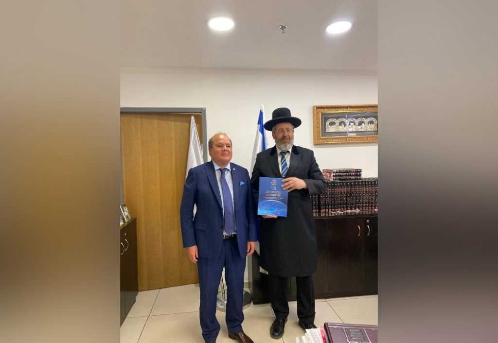Посол Казахстана выразил Главному раввину и Патриарху признательность за постоянное взаимодействие и поддержку инициативы Казахстана и вручил книгу, посвященную итогам VII Съезда лидеров мировых и традиционных религий.