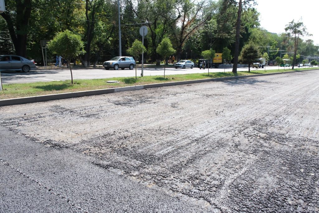 Напомним, в Алматы впервые ведется укладка асфальта с использованием полимеров в составе. Такие смеси устойчивы к износу, имеют высокую температуру размягчения (65-70°С), поэтому легко выдерживают жару без особых последствий, служат намного дольше – 8-10 лет.