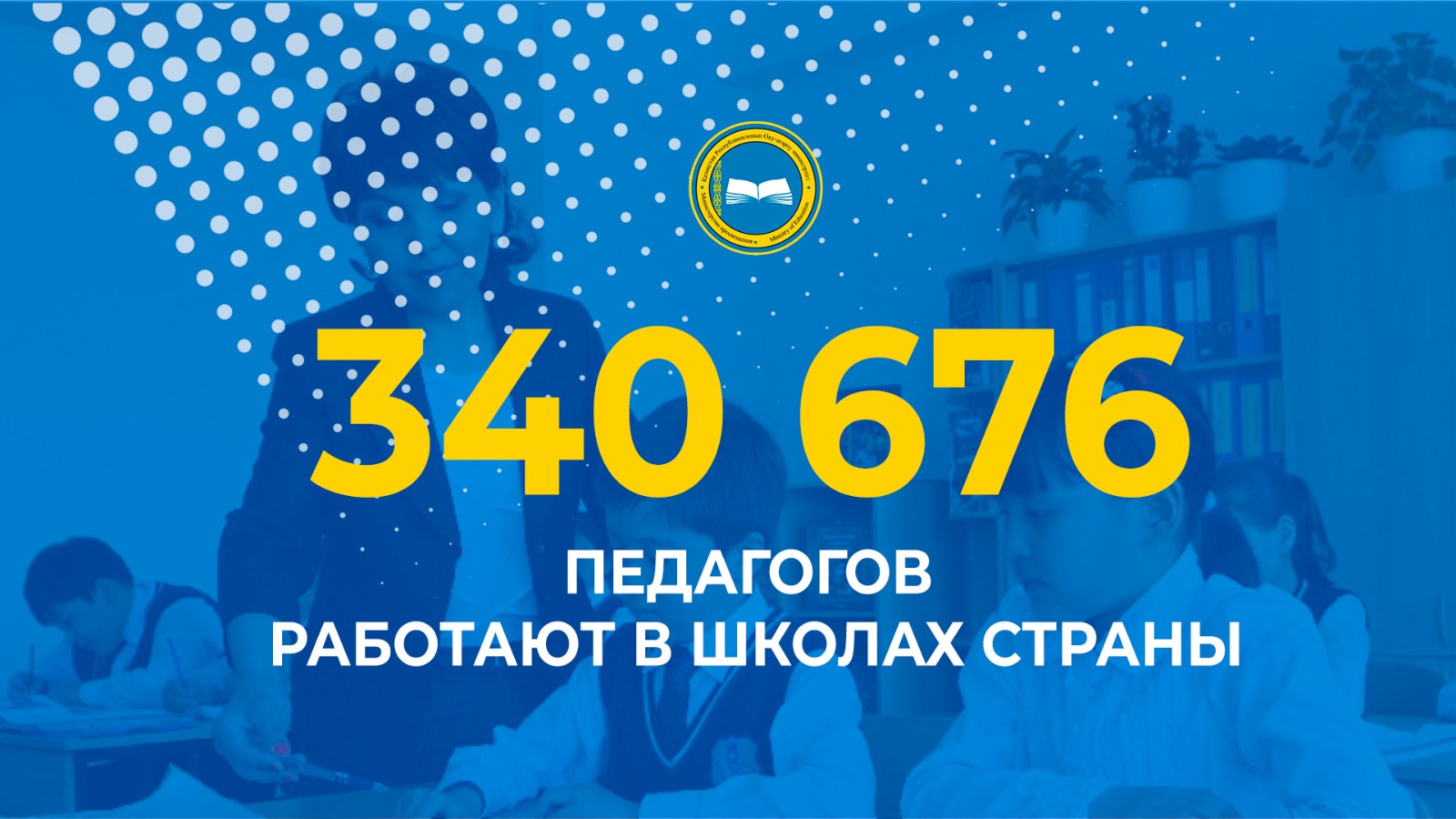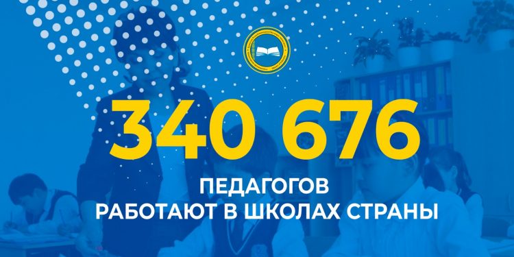 В школах Казахстана работают 340 676 педагогов. Из них со стажем работы: до 10 лет — 147 402, до 20 лет — 88 393, свыше 20 лет — 104 881.