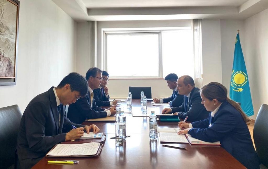 Заместитель министра иностранных дел Республики Казахстан Канат Тумыш принял Посла Республики Корея Чжо Тэ-ика. В ходе встречи было обсуждено состояние и перспективы развития казахско-корейского сотрудничества в политической, культурно-гуманитарной и консульской сферах, а также взаимодействие в многостороннем формате. Было обсуждено также график предстоящих двусторонних мероприятий на высшем и высоком уровнях. По итогам встречи стороны договорились продолжать тесный диалог для дальнейшего укрепления расширенного стратегического партнёрства между странами. Фото: МИД РК.