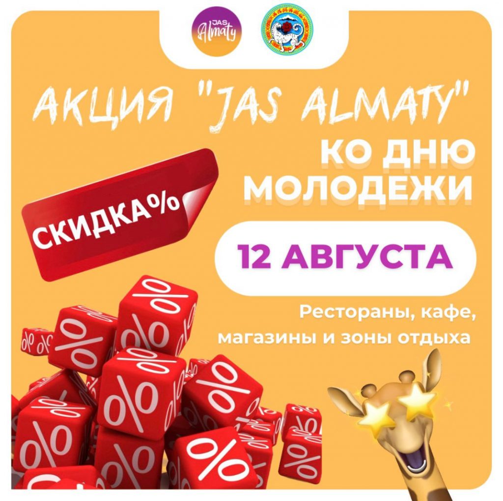 Рестораны, кафе, магазины и зоны отдыха запускают специальные скидки для людей от 14 до 35 лет в честь Международного Дня молодежи. Акция организована Управлением молодежной политики города Алматы, при поддержке Управления предпринимательства и инвестиций, Управлении туризма города Алматы, Фронт-офиса волонтеров города Алматы, Молодежных ресурсных центров и НПП «Атамекен», Кок-Тобе, ГЛК Чимбулак и ТРЦ города.