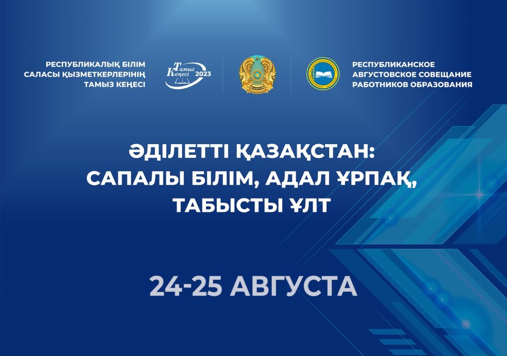 24-25 августа 2023 года в 20 регионах страны стартует республиканское августовское совещание работников образования «Әділетті Қазақстан: сапалы білім, адал ұрпақ, табысты ұлт».