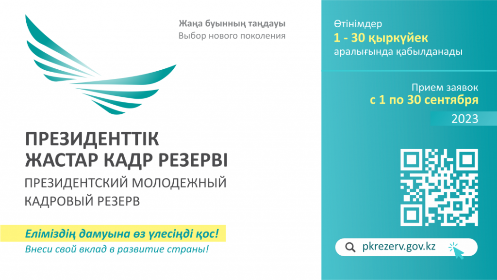 С 1 сентября на сайте pkrezerv.gov.kz начнется прием заявок в Президентский молодежный кадровый резерв. Прием документов продлится до 30 сентября текущего года.