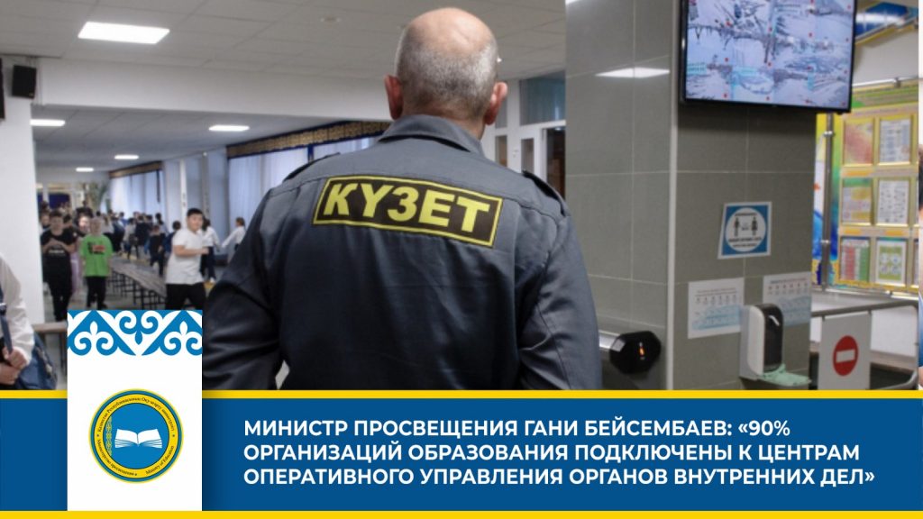 «Для обеспечения безопасности 90% организаций образования подключены к центрам оперативного управления органов внутренних дел, обеспечены лицензированной охраной, оснащены тревожными кнопками. Данная работа должна быть доведена до 100%», — сказал министр Гани Бейсембаев.