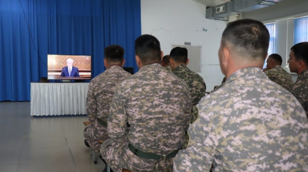 Военнослужащие Шымкентского гарнизона просмотрели важное политическое и программное выступление Главы государства Касым-Жомарта Токаева «Экономический курс Справедливого Казахстана» в своих подразделениях. Данное выступление имеет огромное значение не только для граждан нашего государства, но и особенно для армии, так как военнослужащие являются гражданами Казахстана, чья служебная деятельность неразрывно связана с судьбой Родины. Они с воодушевлением приняли поручение Главы государства по обеспечению армии высокотехнологичным вооружением и военной техникой. Военнослужащие выразили положительный отклик и поддержку актуальным вопросам социально-экономического развития страны и задачам по повышению благосостояния казахстанцев.