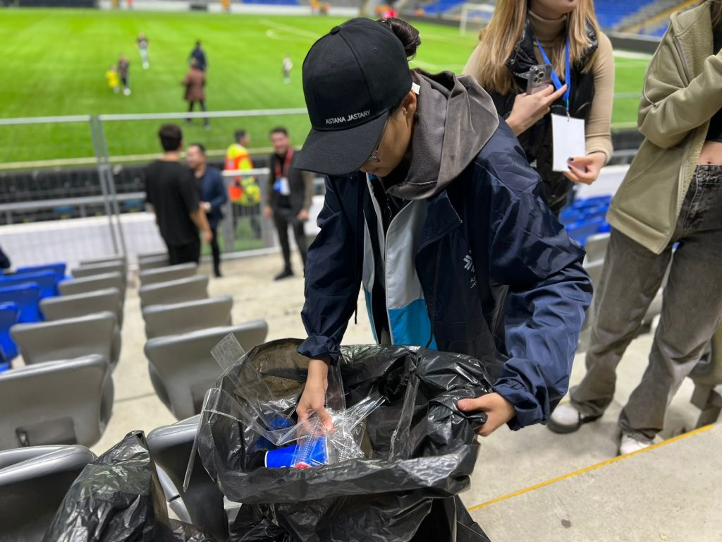 К уборке присоединились как активисты, волонтеры КГУ «Астана Жастары», так и все неравнодушные болельщики.