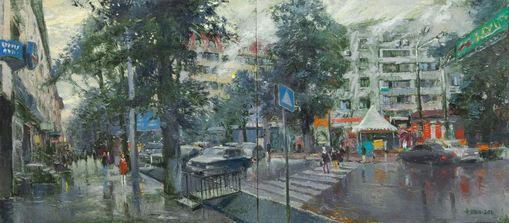 Традиция изображения городского пейзажа в казахстанской живописи берет свое начало в первой половине XX века. В этом направлении работали такие выдающиеся мастера, как Абылхан Кастеев, Умит Ажиев, Андрей Черкасский, Нурлан Тансыкбаев, Олег Кужеленко, Регина Великанова, Жалгас Шарденов, Василий Колоденко, Чингиз Кенжебаев и многие другие.