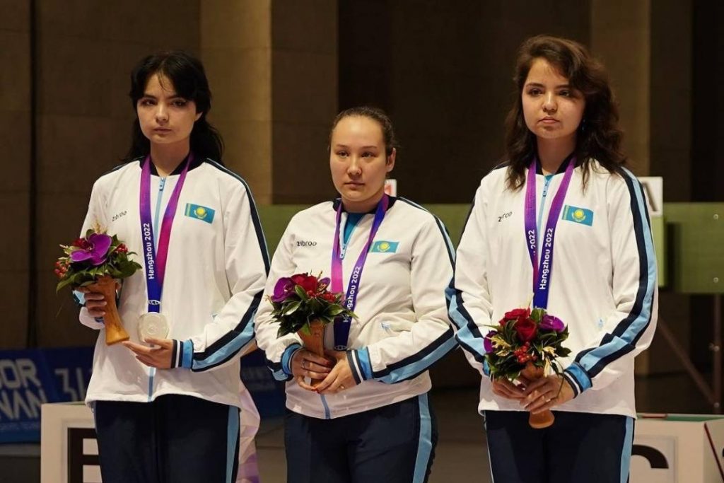 Женская сборная Казахстана (Зухра Ирназарова, Фатима Ирназарова, Александра Садуакасова) заняла второе место в соревнованиях по стрельбе по подвижным мишеням на дистанции 10 метров, сообщает Optimism.kz. Золотую медаль завоевала сборная Северной Кореи с результатом 1655 очков, серебро досталось сборной Казахстана, набравшей 1642 очка. Третье место заняла сборная Индонезии с результатом 1604 очка. Также стоит отметить, что в индивидуальном зачете победителем стала Зухра Ирназарова. Фото: Министерство туризма и спорта РК.