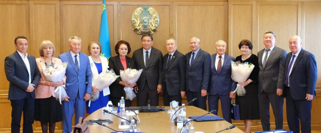 Аким Алматы Ерболат Досаев ко Дню пожилых людей провел встречу c членами президиума городского Совета ветеранов во главе с председателем алматинского Совета Аханом Бижановым.