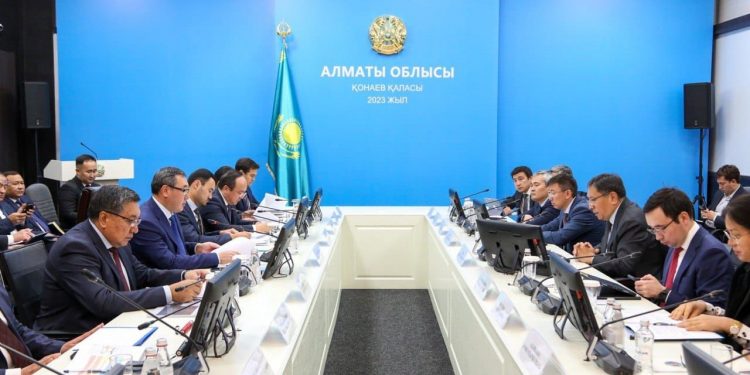 Аким Алматы Ерболат Досаев и аким Алматинской области Марат Султангазиев провели совещание Местного совета агломерации в г. Қонаев.