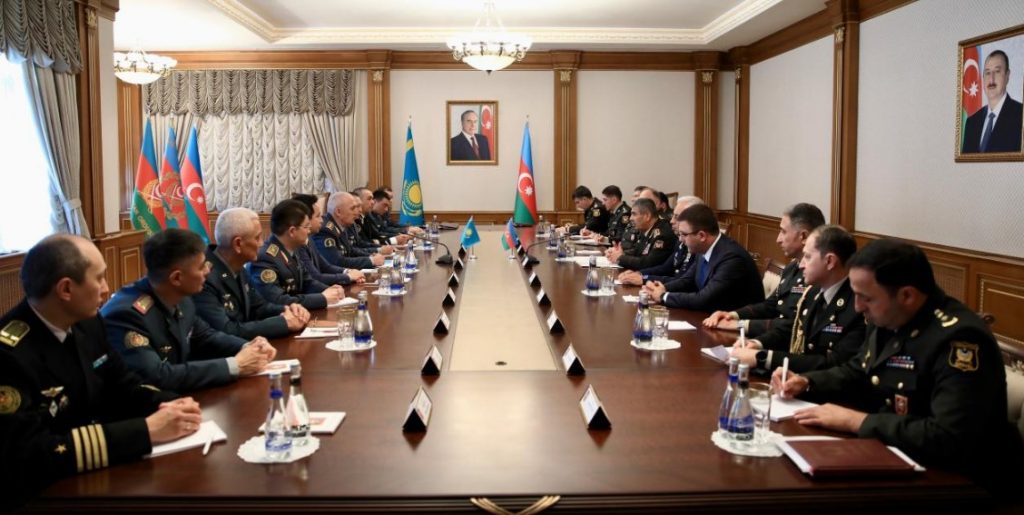 Глава казахстанской военной делегации генерал-полковник Руслан Жаксылыков встретился в Баку с азербайджанским коллегой генерал-полковником Закиром Гасановым в рамках официального визита. На встрече обсуждались итоги сотрудничества двух стран в области обороны. Стороны отметили потенциал сотрудничества в области боевой подготовки, военного образования, медицины и в других сферах. Был утвержден План двустороннего военного сотрудничества на 2024 год. Второй день визита казахстанской военной делегации будет посвящен наблюдению за практическими действиями военно-морских учений «Хазри-2023».