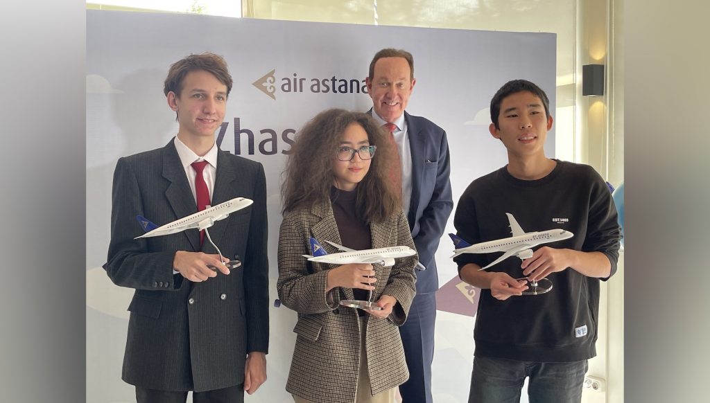 Фото: участники «Жас Кыран» с инициатором проекта – авиакомпанией Air Astana