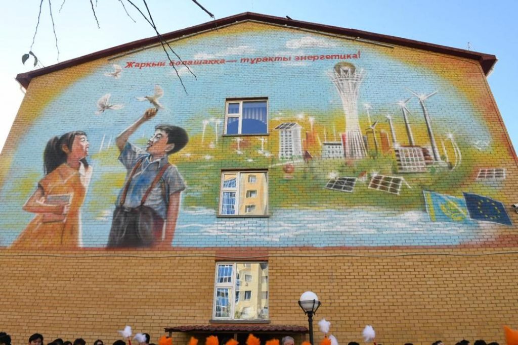 Мурал, посвященный устойчивой энергетике, был открыт в Астане. Его нарисовали на стене школы №59, которая признана самой энергоэффективной в городе, по информации официального сайта акимата. Во время открытия были представлены танцевальные и певческие школьные ансамбли, а также видеопрезентация о процессе создания мурала на тему устойчивой энергетики. Мурал является подарком от Европейского Союза и выделяется среди других работ, представленных на конкурсе, организованном ЕС. Посол ЕС в Казахстане, господин Кестутис Янкаускас, отметил, что мурал призывает к выбору устойчивой энергетики и защите окружающей среды, так как будущее наших детей зависит от сегодняшнего выбора. Мурал стал признанием достижений школы в области энергосбережения и энергоэффективности, а также способом повысить осведомленность молодого поколения о «зеленой» энергетике. Победители конкурса, включая автора идеи Жулдыз Серикову, будут принимать участие в ознакомительной поездке в Европу для изучения опыта в области энергоэффективности и возобновляемых источников энергии.
