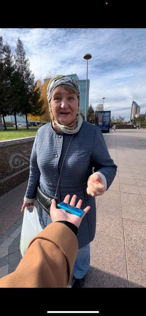 В рамках акции «Мейірімді қала» волонтеры дарят прохожим шоколад, напоминая о единстве и патриотизме. Организаторы челленджа отметили, что принять участие в нем очень просто.