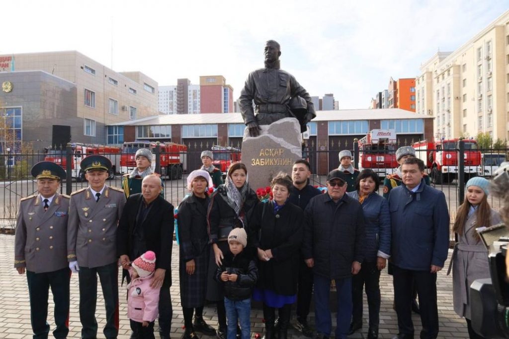 В столице было торжественно открыт памятник погибшему героически столичному пожарному Аскару Забикулину. На церемонии присутствовали министр по чрезвычайным ситуациям Республики Казахстан Сырым Шарипханов, аким столицы Женис Касымбек, ветераны органов гражданской защиты и родные Аскара. В своем выступлении министр отметил героизм и самоотверженность пожарного, который вызывает глубокое уважение и восхищение. После снятия покрова с памятной доски присутствующие почтили его память минутой молчания. Памятник высотой три метра изображает бюст Аскара из бронзы, а нижняя часть выполнена из мрамора. Вокруг памятника на территории пожарной части высажены деревья, цветы и кустарники. Аскар Забикулин погиб при тушении пожара в 2022 году, спасая жизни троих людей, и был посмертно награжден государственной наградой «Айбын» I степени.