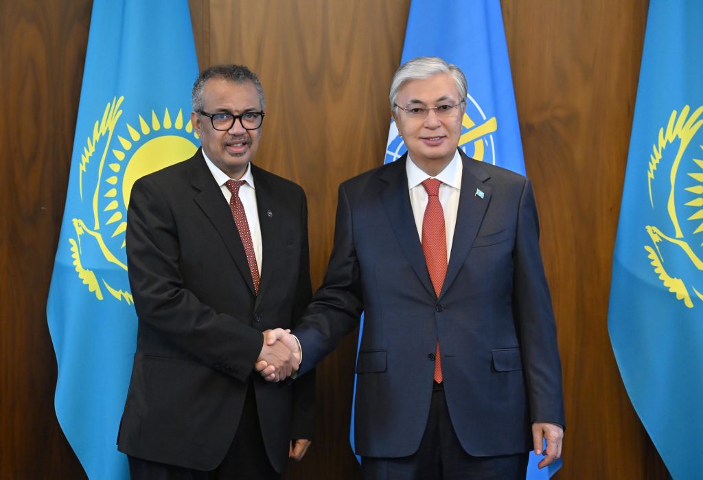 Во время встречи с Генеральным директором ВОЗ Тедросом Гебрейесусом и главой Европейского регионального бюро ВОЗ Хансом Клюге в Астане был обсужден широкий спектр вопросов по сотрудничеству с ВОЗ. Президент Касым-Жомарт Токаев подтвердил готовность Казахстана поддерживать инициативы ВОЗ, особенно в области укрепления системы здравоохранения и достижения целей ООН по охране здоровья. Генеральный директор ВОЗ выразил благодарность за поддержку и отметил важность Алма-Атинской и Астанинской деклараций. Также были рассмотрены вопросы сотрудничества с ВОЗ в рамках ШОС и реализации Дорожной карты в Центральной Азии.