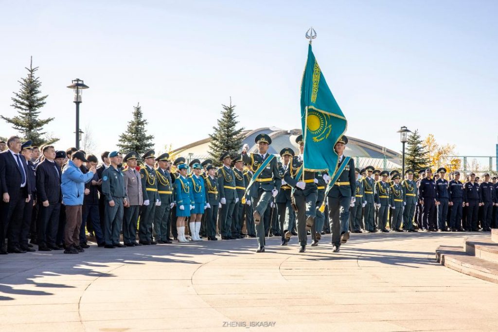 Торжественная церемония поднятия Государственного Флага, посвященная Дню Республики, состоялась в Талдыкоргане на площадке в парке «Жастра», где Флаг развевается на 92-метровом флагштоке, сообщает Optimism.kz. Во время мероприятия музыкальное сопровождение обеспечил военный оркестр, как сообщает пресс-служба акима области Жетысу. В церемонии приняли участие аким области Бейбит Исабаев, депутаты маслихата, руководители правоохранительных органов, общественные деятели, военнослужащие, представители НПО, СМИ, молодежь и жители города. Во время церемонии звучал Государственный Гимн и был поднят Государственный Флаг. После официальной части артисты и творческие коллективы региона исполнили патриотические песни. Фотографии: Жеңіс Ысқабай / Акимат области Жетісу.