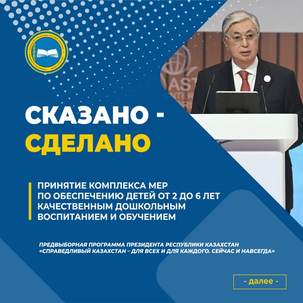 (Предвыборная программа Президента Республики Казахстан «Справедливый Казахстан – для всех и для каждого. Сейчас