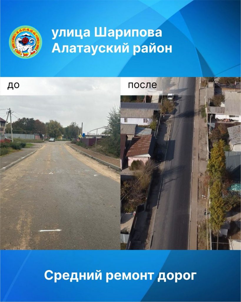 На одной из запланированных улиц — по улице Шарипова от проспекта Райымбека до улицы Шугыла проведен средний ремонт с обустройством тротуара. Ранее от жителей поступали многочисленные нарекания по состоянию улицы. Протяженность улицы – 2640 м. На сегодня работы полностью закончены, таким образом восстановлены маршруты общественного транспорта.