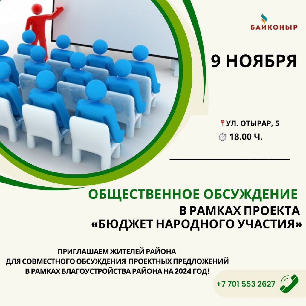 Первое обсуждение состоится в 18.00 часов 9 ноября в здании аппарата акима района Байконыр, расположенного по адресу улица Отырар, 5.