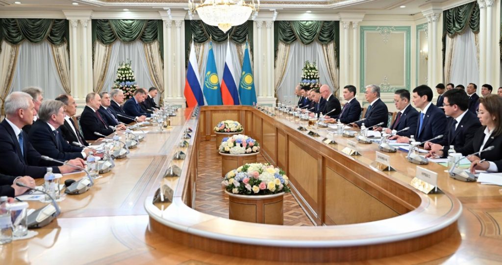Глава государства Казахстана, Касым-Жомарт Токаев, провел переговоры с президентом России, Владимиром Путиным, с участием официальных делегаций обеих стран. По словам Токаева, визит Путина в Казахстан имеет особое значение для перспектив развития межгосударственных отношений, которые развиваются в духе стратегического партнерства. Обсуждены многие аспекты двусторонней экономической повестки и достигнуты ряд соглашений о дальнейшем углублении взаимодействия по разным направлениям, включая здравоохранение, энергетику, транспорт, сельское хозяйство, и спорт. В конце встречи лидеры подтвердили свое стремление к углублению казахстанско-российских отношений и интеграционных процессов на Евразийском пространстве.