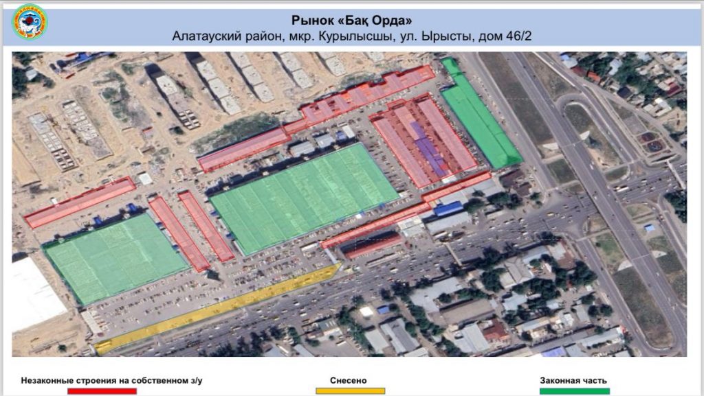 — «Бак орда», общая торговая площадь — 76 530 м2, из них незаконные объекты занимают 6000 м2.
