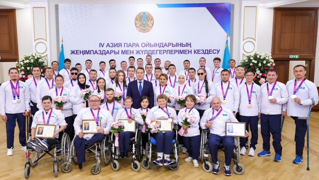 Премьер-Министр Республики Казахстан, Алихан Смаилов, встретился с победителями и призерами IV Азиатских Параигр, которые прошли в китайском городе Ханчжоу. Казахстан на соревнованиях представлял 131 спортсмен в 14 видах спорта, завоевав 41 медаль, включая 8 золотых, 12 серебряных и 21 бронзовую. Об этом сообщает Optimism.kz.