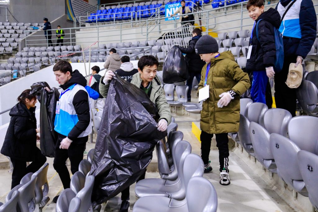 Группа столичных волонтеров и неравнодушных фанатов убрала мусор на стадионе «Астана Арена» после матча сборной Казахстана против команды Сан-Марино в рамках отбора на Евро-2024.