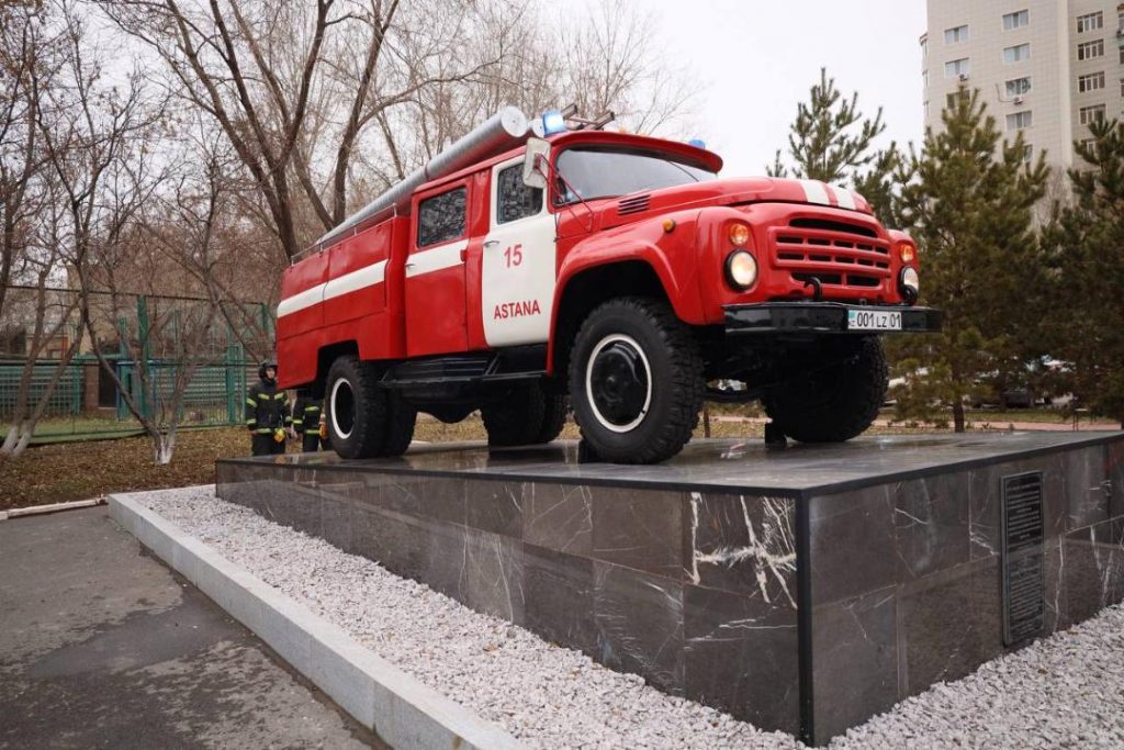 На территории Специализированной пожарной части № 2 ДЧС города Астаны открыли специальный постамент для пожарной машины, сообщает Optimism.kz.