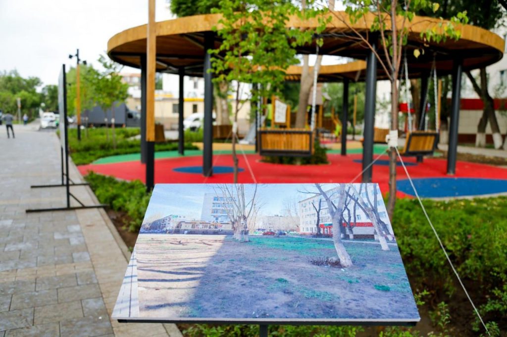 По ул. Кумисбекова, 7/1 вместо старых гаражей построили удобное и безопасное место для отдыха горожан. Благоустроили территорию, высадили деревья и др. По адресу переулок Коктобе, 5 вместо пустыря теперь есть спортивно-игровая зона.