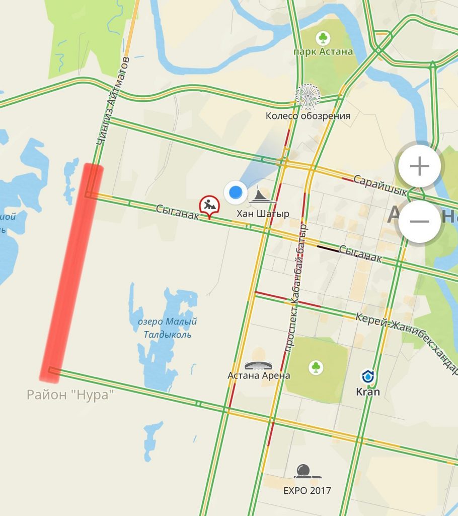 Напомним, с 17 ноября открылось движение по ул. Ч. Айтматова от ул. Сыганак с выездом на проспект Улы дала в обоих направлениях.