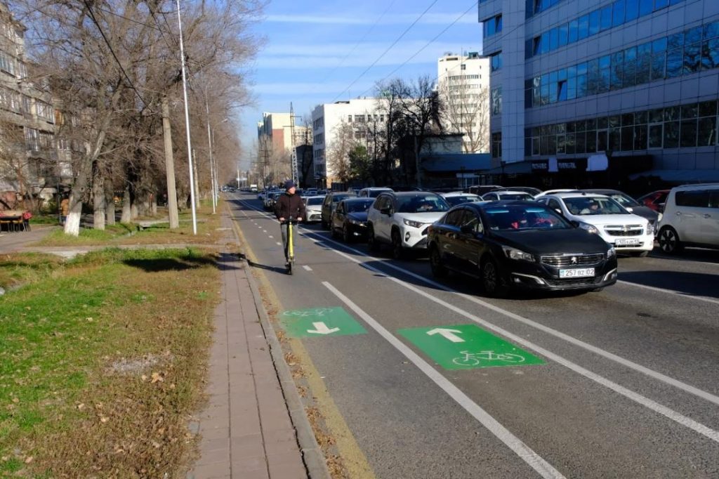 Таким образом, существующие велосипедные полосы, расположенные по улицам Шевченко и Сатпаева, были соединены между собой.